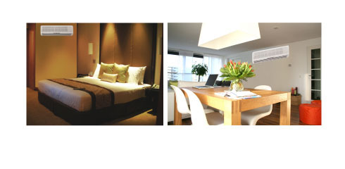 Split air conditioning offer higher efficiency and reduced noise without a large hole in the wall or an open window. By separating the AC compressor and AC condenser coil from the fan and evaporator coil, the noisiest component is outside and away from the room. The indoor part of the ductless air conditioner has remote control capabilities and a timer to cycle the ductless ac system only when needed. Since mini split air conditioners have no ducts, they avoid the energy losses associated with ductwork of central forced air AC systems. Duct losses can account for a significant portion of energy consumption for space conditioning, especially if the ducts are in a unconditioned space such as an attic. |